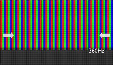 Traditional LCDs are driven in a single direction from left to right. As refresh rates increase, pixels in the lower right corner toward the end of the drive circuit cannot quickly receive sufficient voltage, resulting in an incorrect display of color information. |